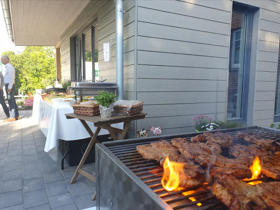 Das Grillcatering gehört bei uns genauso zum Standard wie gutes Fleisch auf den Rost. Ob direkt bei dir vor Ort mit Show-Cooking oder vorbereitet aus unserer eigenen Küche: Wir setzen auf modernes Equipment, Profigrills und 100 % Leidenschaft.