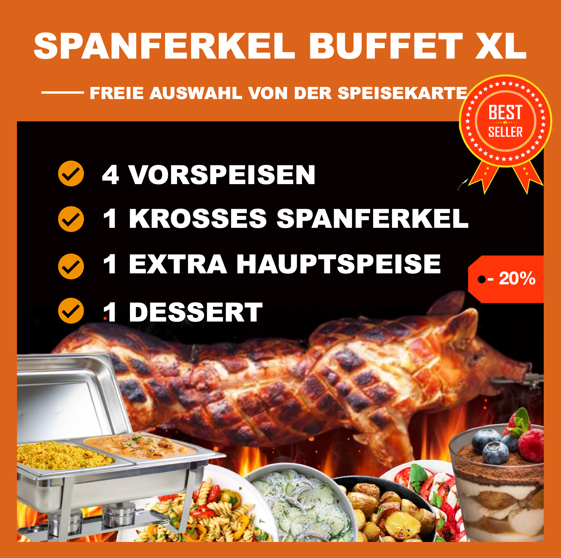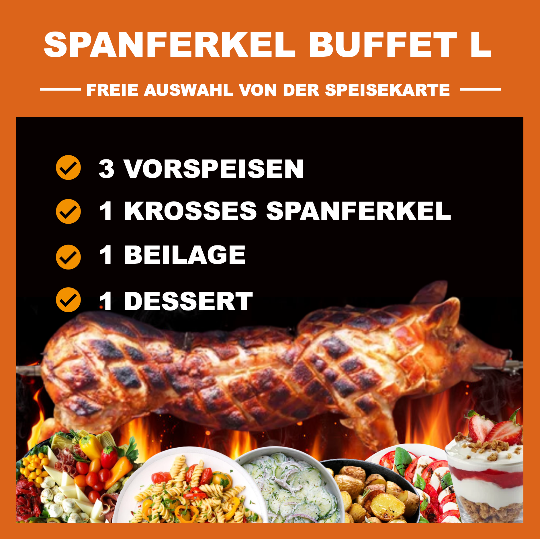 Wähle jetzt die Gerichte aus, die dir und deinen Gästen schmecken. Egal was du wählst, der Preis bleibt gleich.